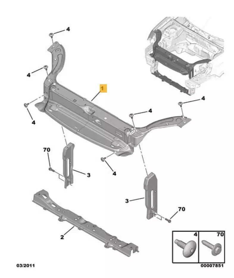 Передняя панель радиаторов/ телевизор/ усилитель 7106C2, 7106C7 Citroen Berlingo (M59)/ Peugeot Partner