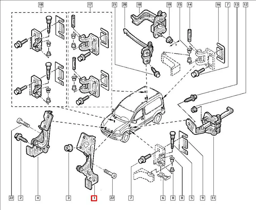 Петля капота левая (белая). Kangoo I (03-08)/ Nissan Kubistar
