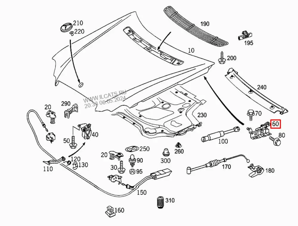 Петля капота левая Mercedes C-Class, Петля капота левая Mercedes W203, Петля капота левая Mercedes CLK