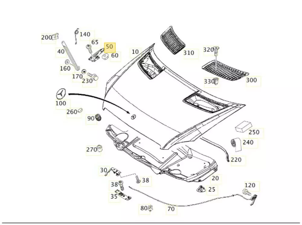 Петля капота левая/ занавес, код краски: 9147 (оригинал). Mercedes