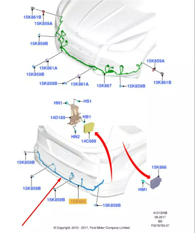Проводка заднего бампера 1871221, FV4T-15K868-MKB Ford Kuga MK2 (12-19)