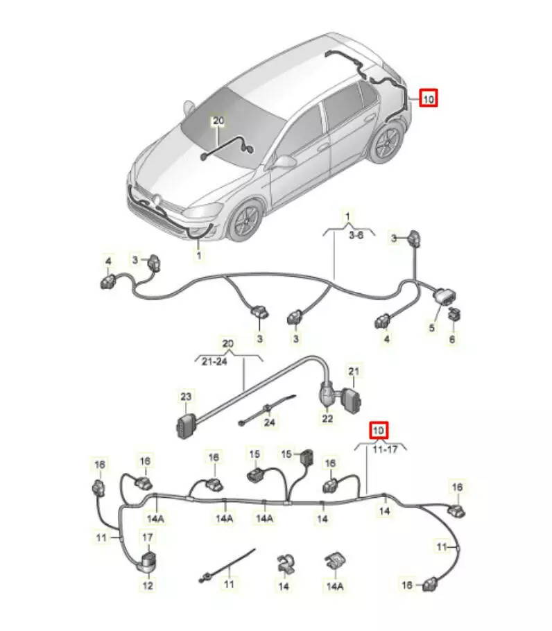 Проводка заднего бампера (6шт датчиков); Volkswagen Golf VII