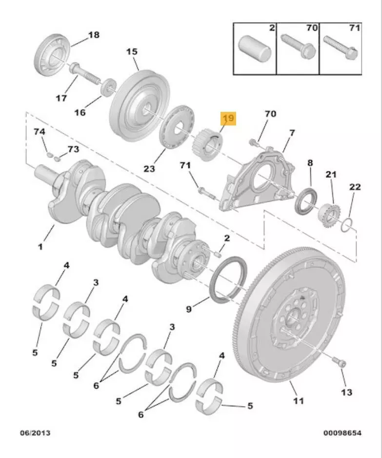 Шестерня коленвала + шпонка (оригинал); FoMoCo 2.0 TDCi/BlueHDi