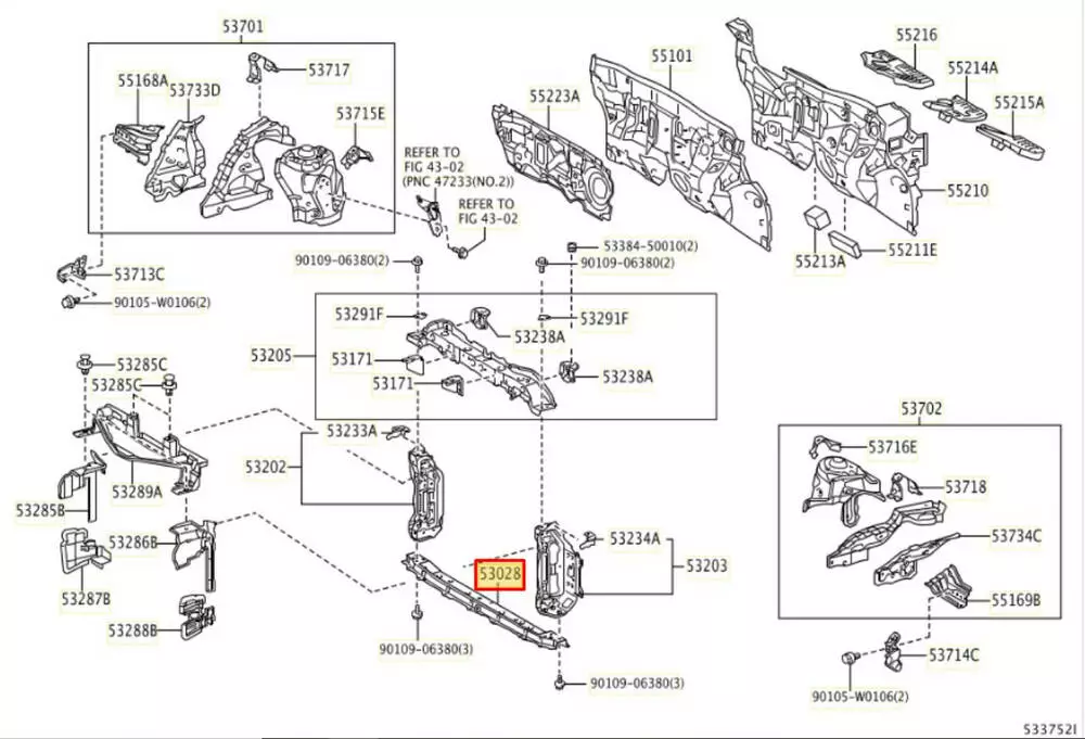 Суппорт радиаторов верхний/ панель передняя 530280D031 Toyota Yaris III P13 (11-18)