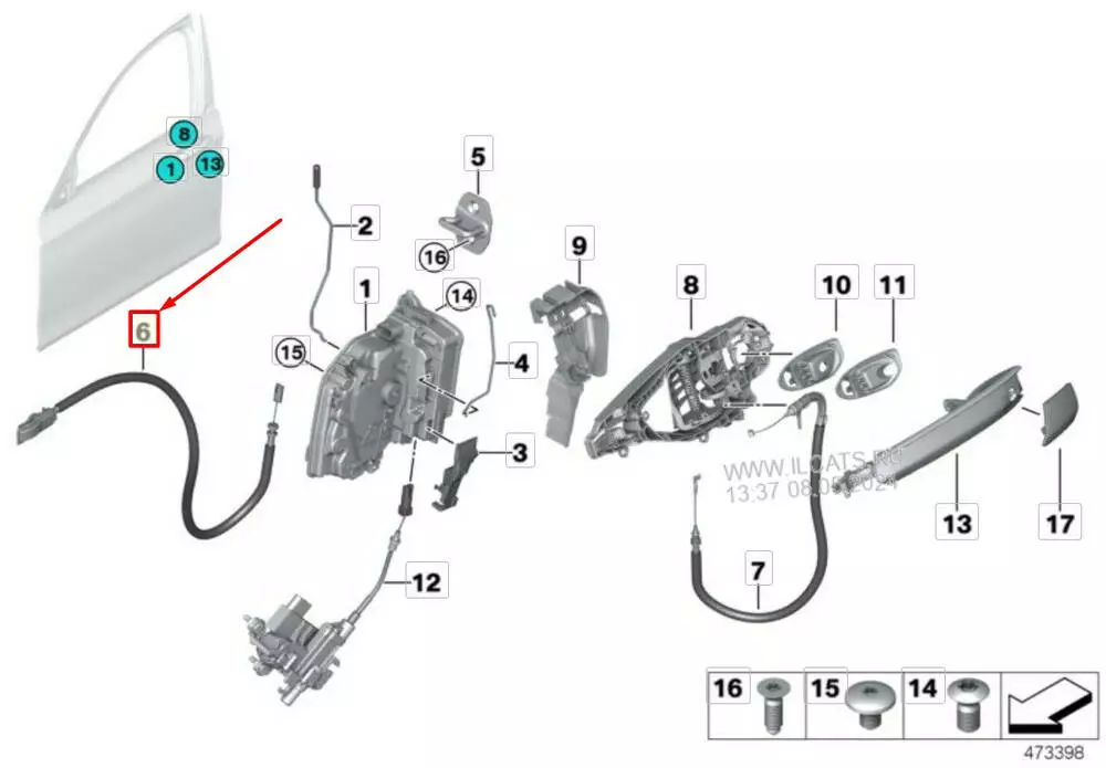 Трос ручки/ замка передней двери (оригинал). BMW 7 G11/G12