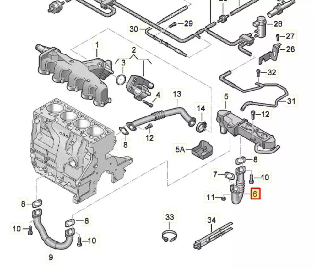Трубка EGR Volkswagen, Трубка EGR Audi, Трубка EGR Seat, Трубка EGR Skoda