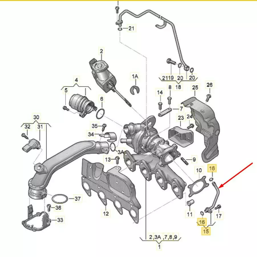Трубка слива масла из турбины/ дренаж; VAG 1.2 TSI; Volkswagen Audi