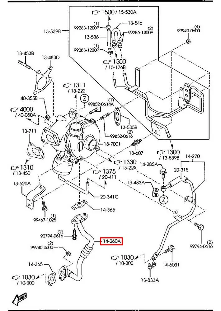 Трубка слива масла турбины RF7J14260 Mazda 2.0 MZR-CD RF7J
