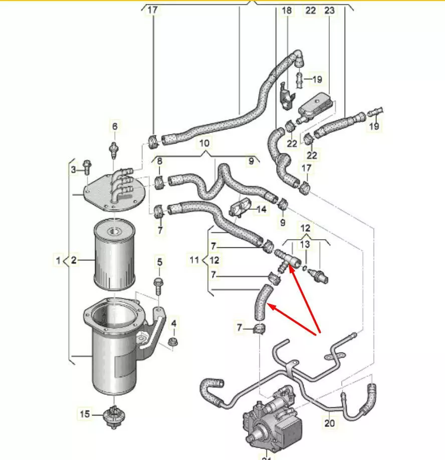 Трубка топливная/ датчик температуры топлива; VAG 1.6 TDI