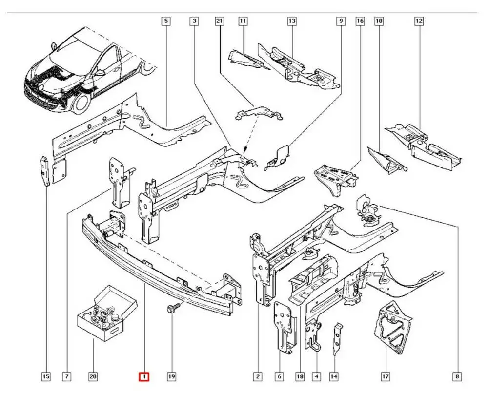 Усилитель переднего бампера (оригинал Renault) Megane III