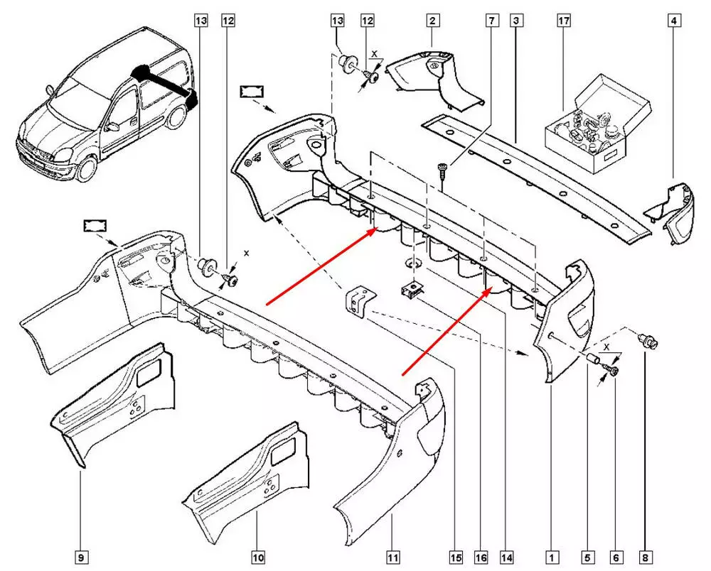 Усилитель заднего бампера Nissan Kubistar, Усилитель заднего бампера Renault Kangoo,