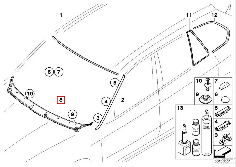Жабо БМВ Х5, накладка дворников БМВ Х5